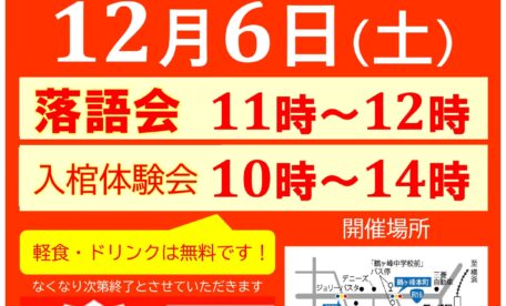 【イベント開催】12月6日 (土)ファミリーホール鶴ヶ峰にて落語会・入棺体験会