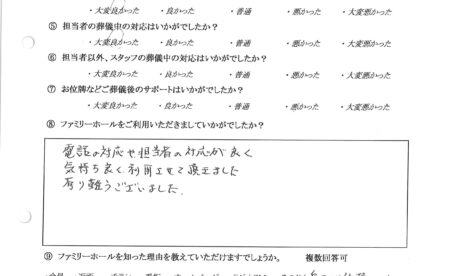 お客様のお声『相談に乗っていただき、母の望んだ形で営むことができたと思います』
